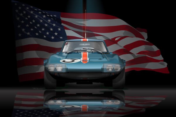My Corvette Grand Sport—Independence art was the result of a customer requesting something with a patriotic theme and I could thin of no better example of an All-American race car…