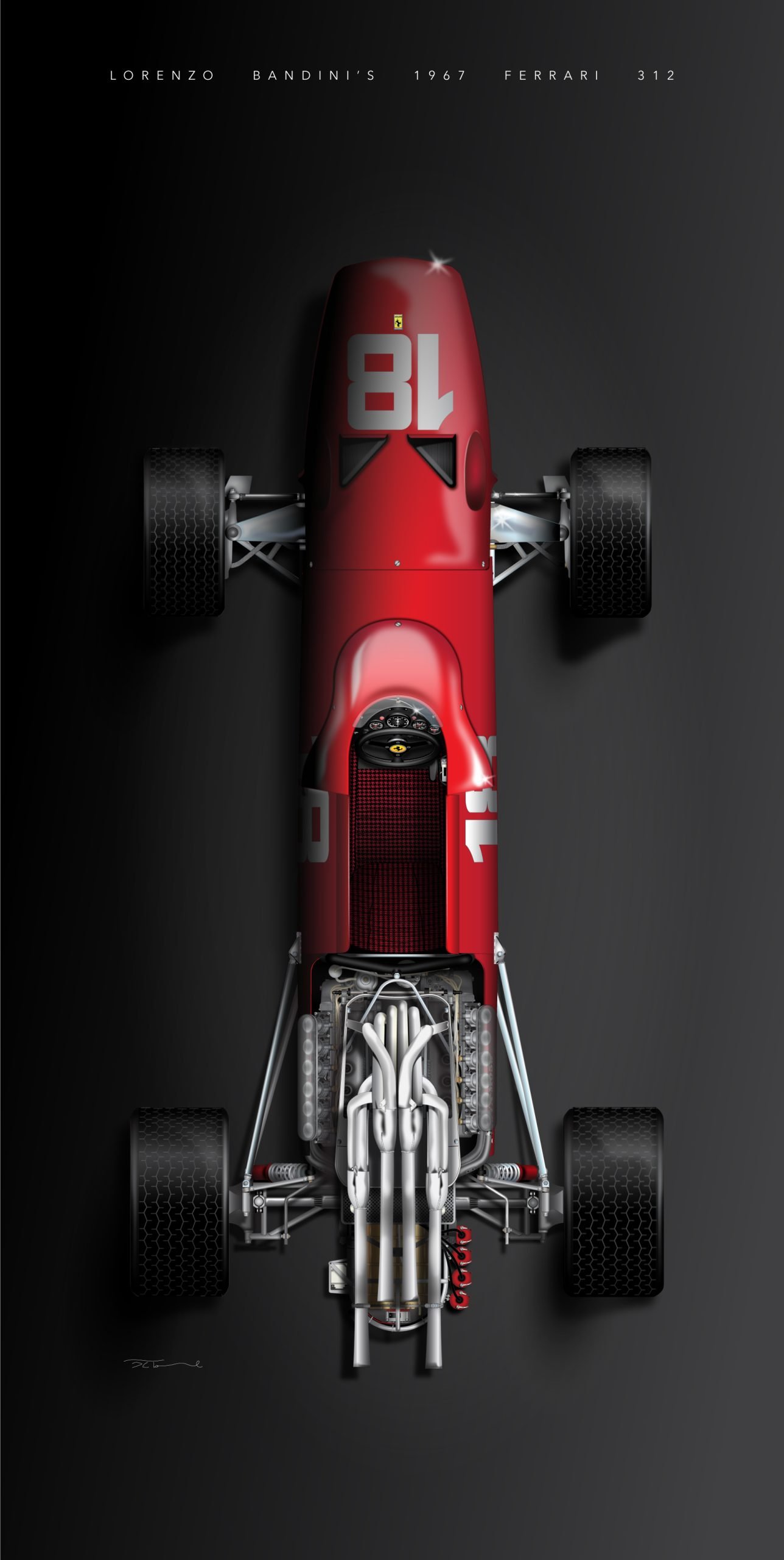My 1967 Ferrari 312 limited edition commemorative print—Lorenzo’s Last Ride—is available in both vertical and horizontal formats as a framed or unframed pigmented archival print, on brushed aluminum, or as a large-scale fabric print. All prints are numbered and signed.