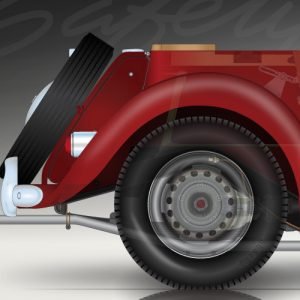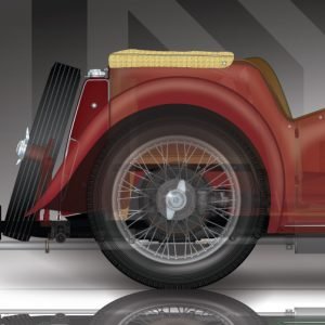 $329.00MG’s attempt to bridge the gap between the venerable MG TD and upcoming MGA, my TF illustration comes complete with 48-spoke wire wheels (or “steelies” if you prefer), Stokes air cleaners, and new “chrome” highlights. If you prefer, you can delete the wind wings, fender mirror, and driving/fog lamp. This illustration combines more of the classic cutaway style of ghosting in the exterior panels (and some of the other components as well) with my signature, cross section technique. This development of style not only highlights the mechanical components but helps maintain the exterior shapes that are so much a part of the marque, giving the illustration a more finished appearance as well as ties to the heritage of classic cutaways.